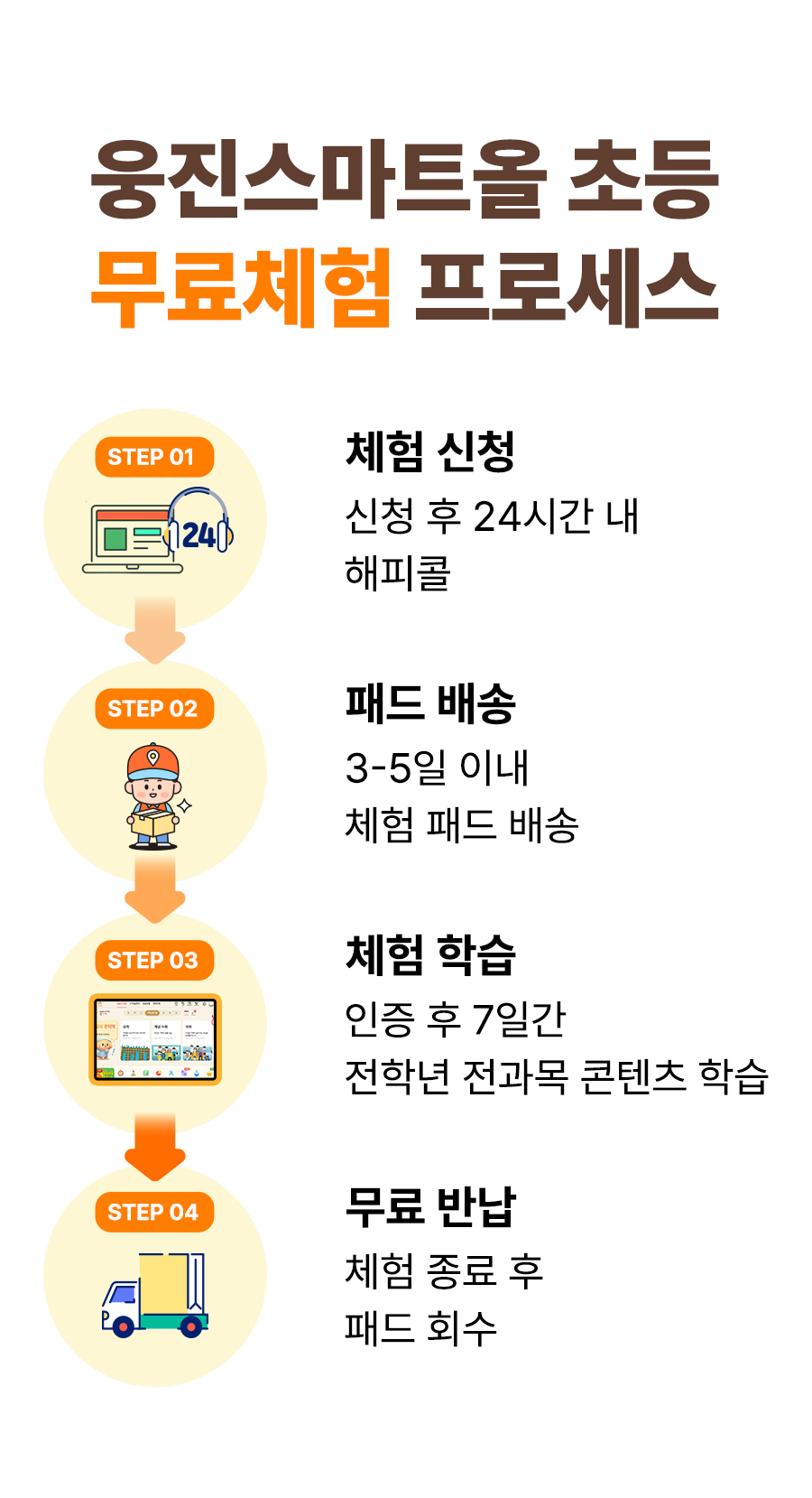 1. 주식회사 웅진씽크빅(이하, '회사')의 무료체험패키지(이하, "체험 패키지")는 북패드, 키보드 거치대, 충전기(USB 연결선)로 구성되어 있습니다.